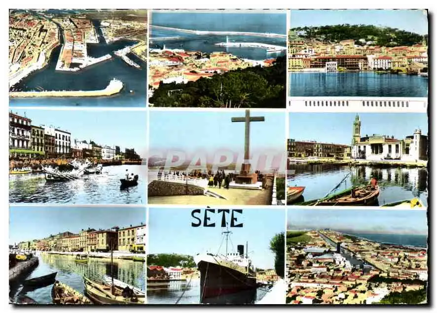 Cartes postales moderne Sete vue aerienne Cliche R Durandaud l'Entree du port vue generale les Joutes Sommet du Mont St