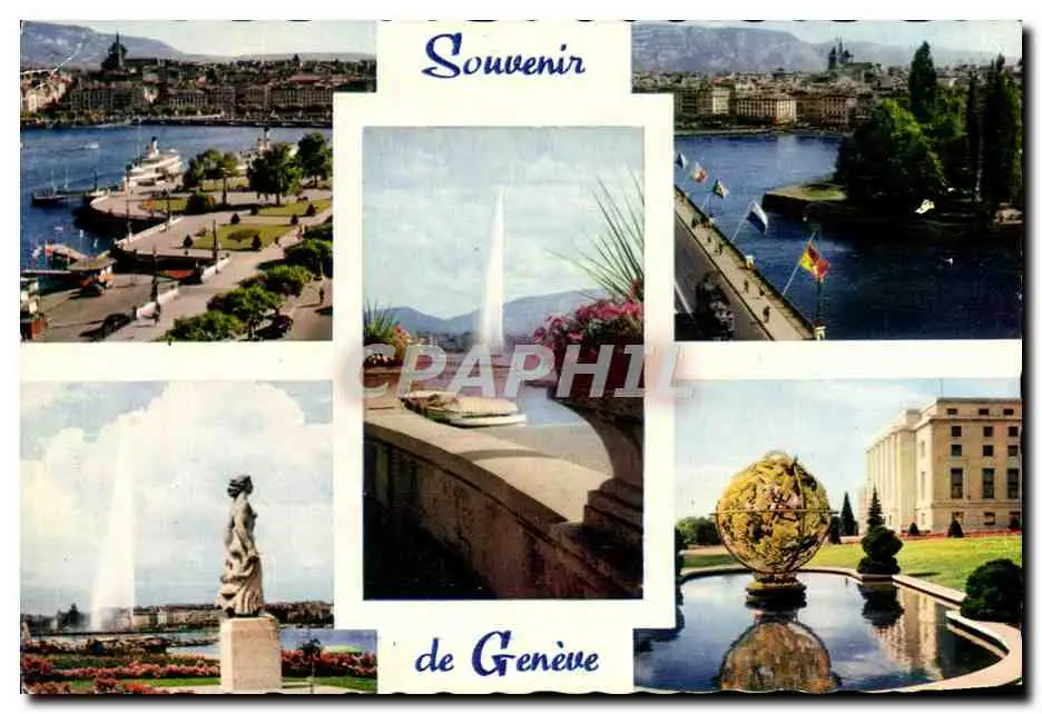 Cartes postales moderne Souvenir De Geneve La rade Le pont du Mont Blanc Le jet d'eau Quai Gustave Ador Palais de l&#