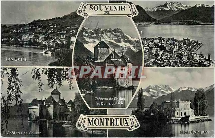 Cartes postales moderne Souvenir de Montreux Les Quais Vue generale Chateau de Chillon les Dents du Midi Ile de Salagnon