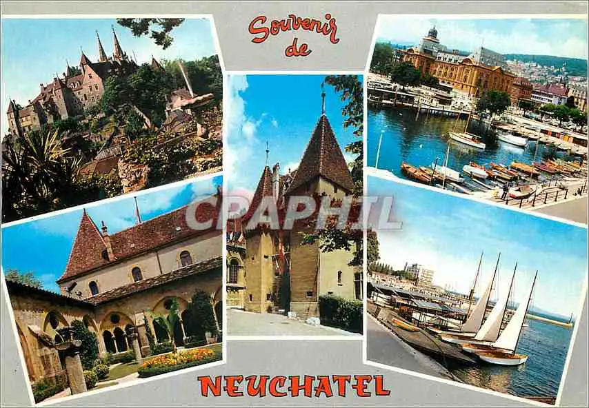Cartes postales moderne Souvenir de Neuchatel La Collegiale Le Port et la ville Chateau de Neuchatel Le Cloitre Le Chate