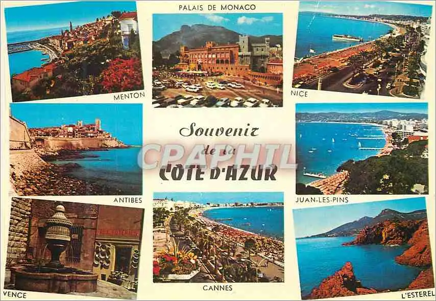 Cartes postales moderne Souvenir de la Cote d'Azur Palais de Monaco Menton Nice Antibes Juan les Pins Vence Cannes l'Est