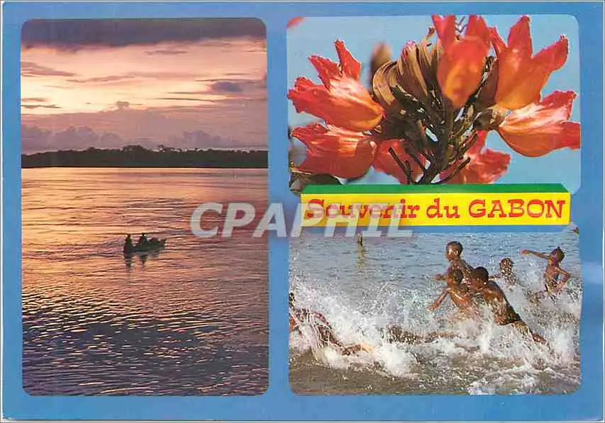 Cartes postales moderne Souvenir du Gabon Crepuscule sur L'Ogooue Tulipier du Gabon Joies de L'Eau
