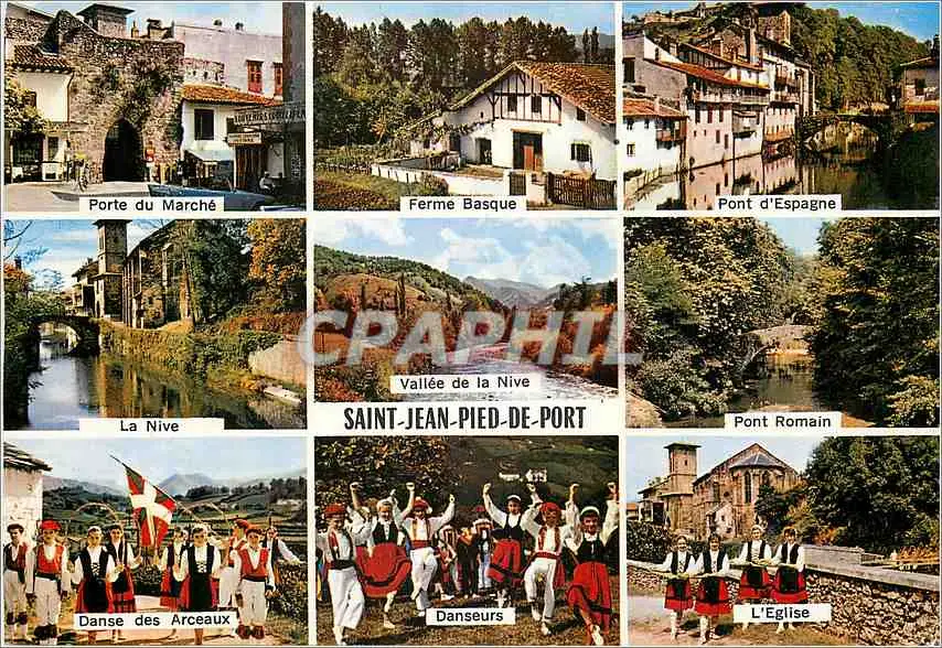 Cartes postales moderne St Jean Pied de Port Porte du marche Ferme basque Danseurs Folklore L'eglise