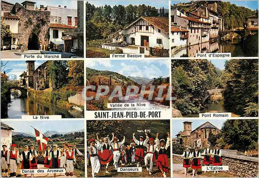 Cartes postales moderne St Jean Pied de Port Porte du marche Ferme basque Pont d'Espagne La Nive Pont romain Danse des a