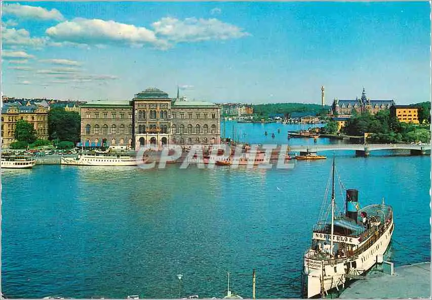 Cartes postales moderne Stockholm the harbour and the national museum Bateau