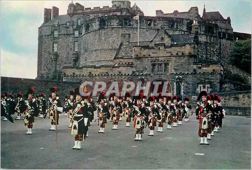 Cartes postales moderne The Castle Edinburgh The pipe band of the 1st battalion Black watch Militaria