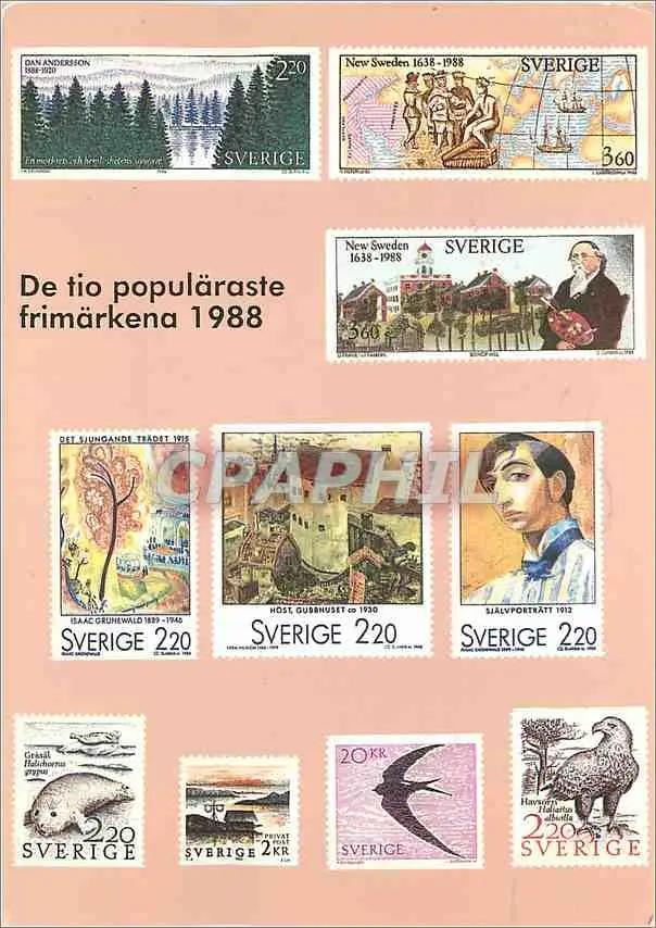 Cartes postales moderne The ten most popular Swedish stamps 1988