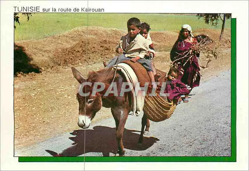 Cartes postales moderne Tunisie sur la Route de Kairouan Ane Donkey