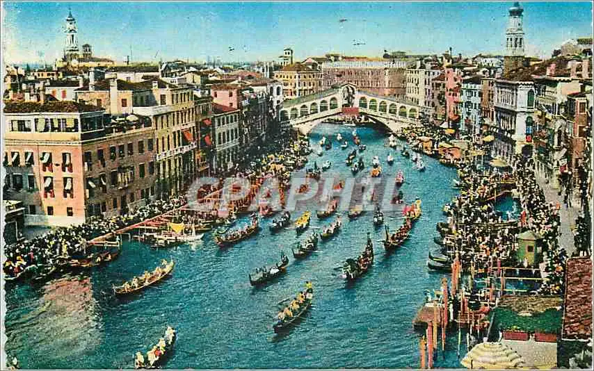 Cartes postales moderne Venezia Pont de Rialto Bateaux