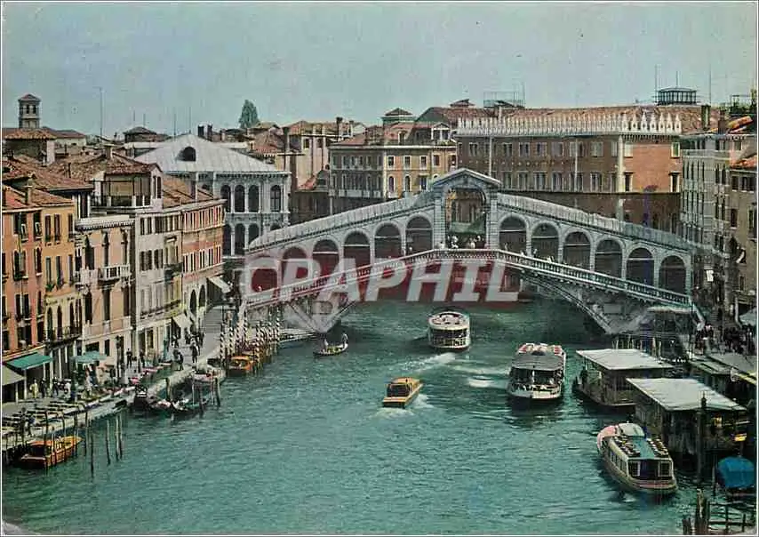 Cartes postales moderne Venezia Pont du Rialto Bateaux