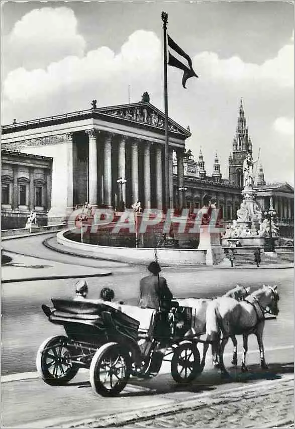 Cartes postales moderne Vienne Wien Ringstrasse avec Parlement et Centre Municipal Caleche Chevaux