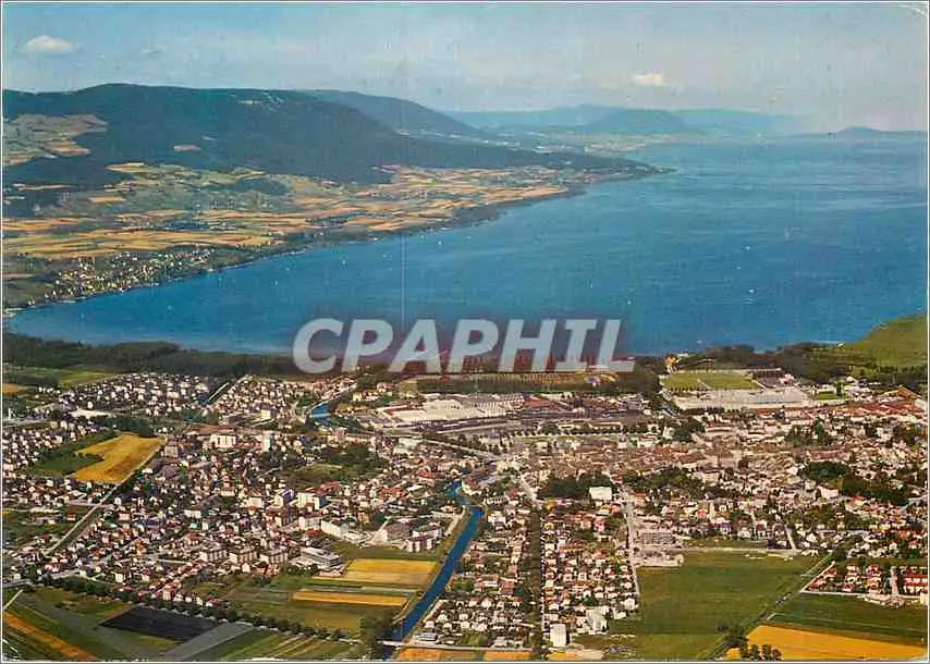 Cartes postales moderne Yverdon et le Lac de Neuchatel Vue aerienne