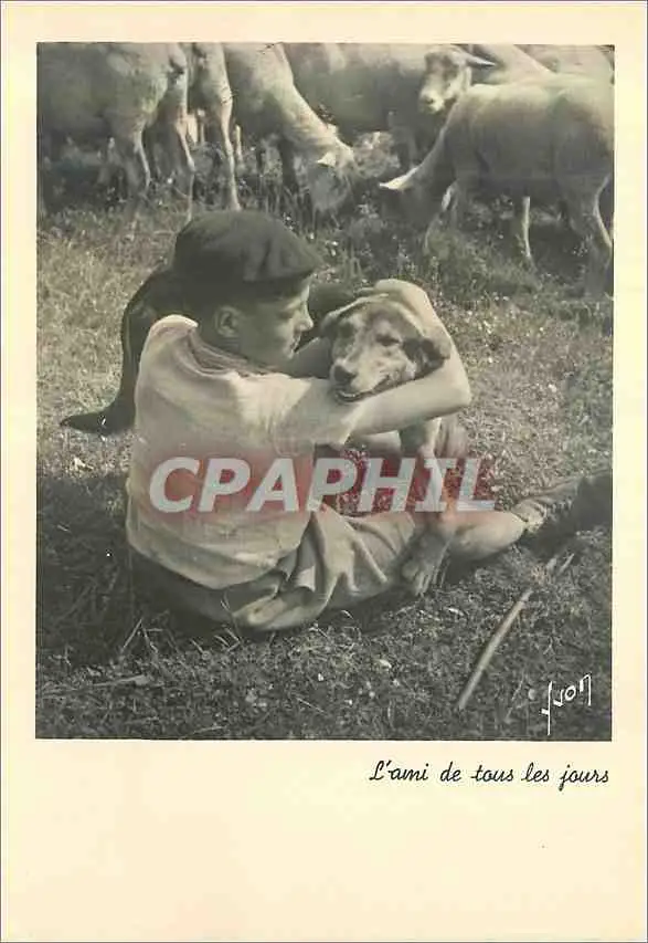 Cartes postales moderne l'Ami de Tous les Jours Chien Enfant Moutons