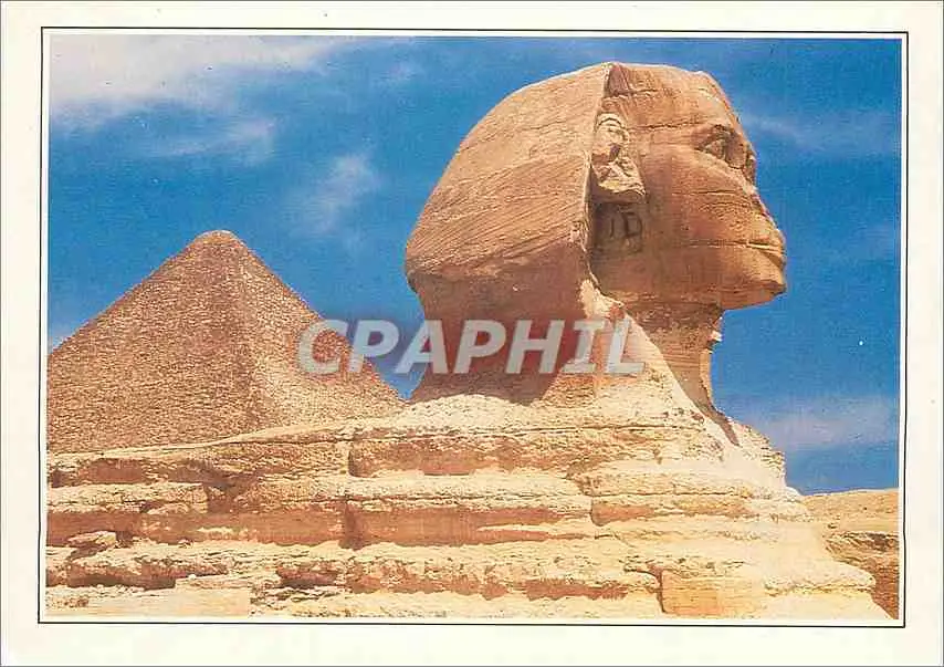 Cartes postales moderne le Sphinx de Gizeh Veille sur la Grande Pyramide de Kheops Lion Androcephale Colossal