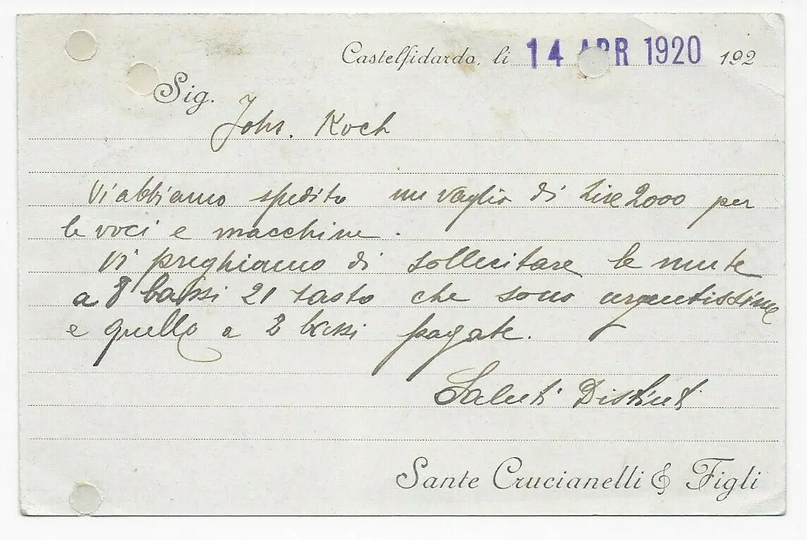Castelfidarda 1920 après Trossingen, musique, ordre
