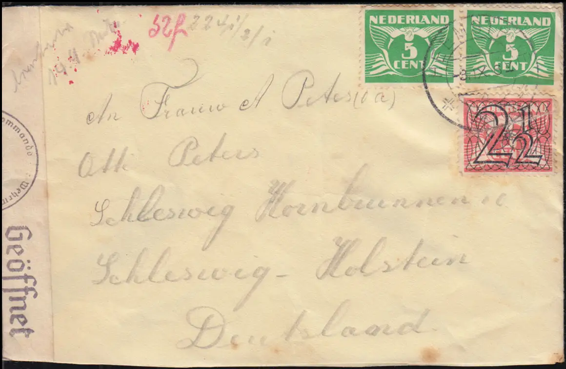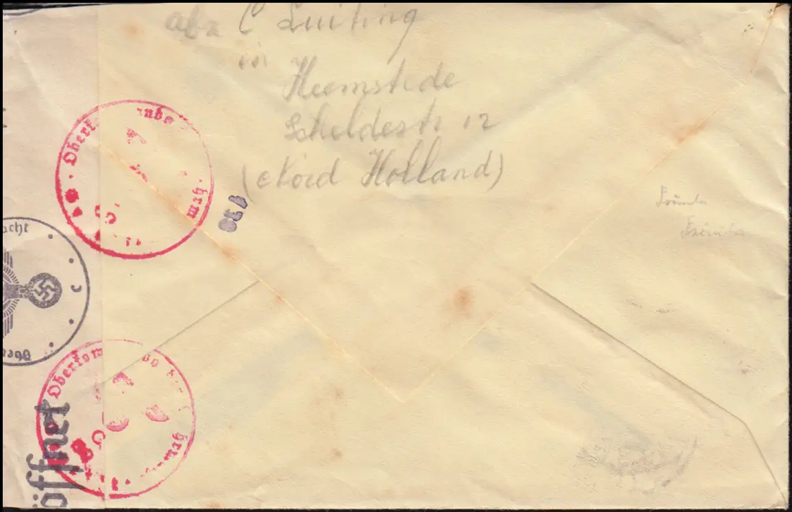 Censuration allemande sur lettre Pays-Bas HEEMSTEDE 8.9.1941 vers Schleswig-Holstein