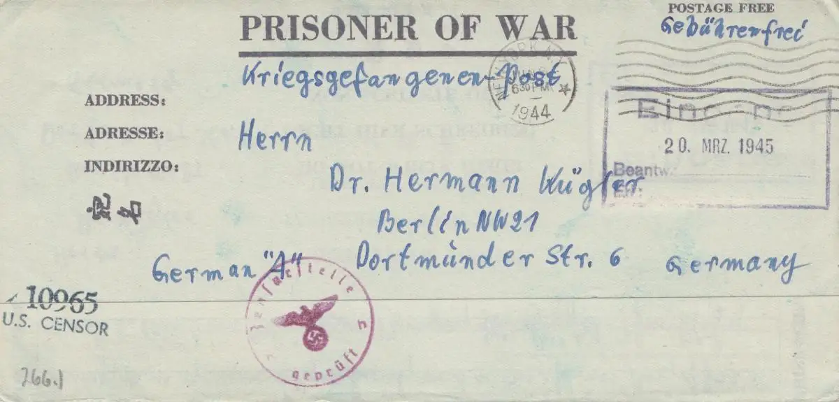 Censuration: mars 1945: POW des États-Unis à Berlin: US Censor