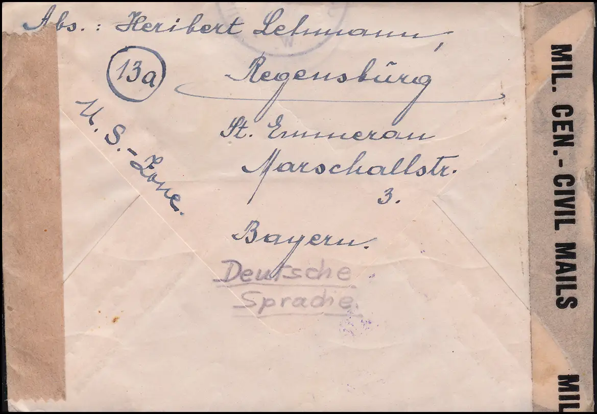 Censure - Censuration autrichienne - 737 et U.S. 10555 Lettre REGENSBURG n. Vienne