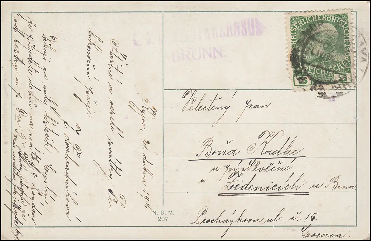 Censure K.u.K. Militaire Brunn sur AK mariage Montenegrische KYJOV/GAJA 1916