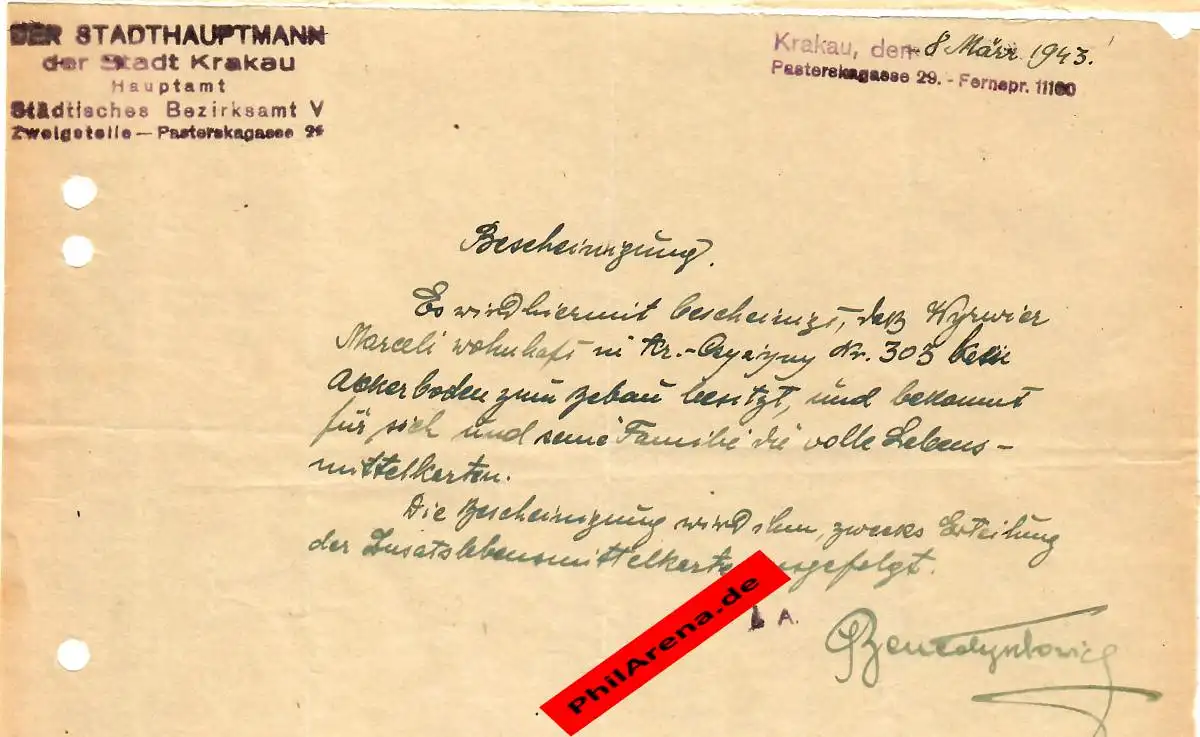 Certificat GG pour les fournisseurs partiels, les cartes alimentaires nécessaires pour la famille Cracovie 43