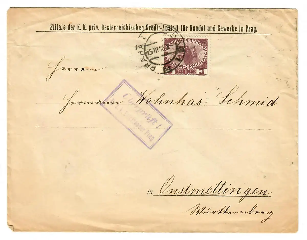 C'est une impression de Prague après Anstmettingen, censure Prague 1916