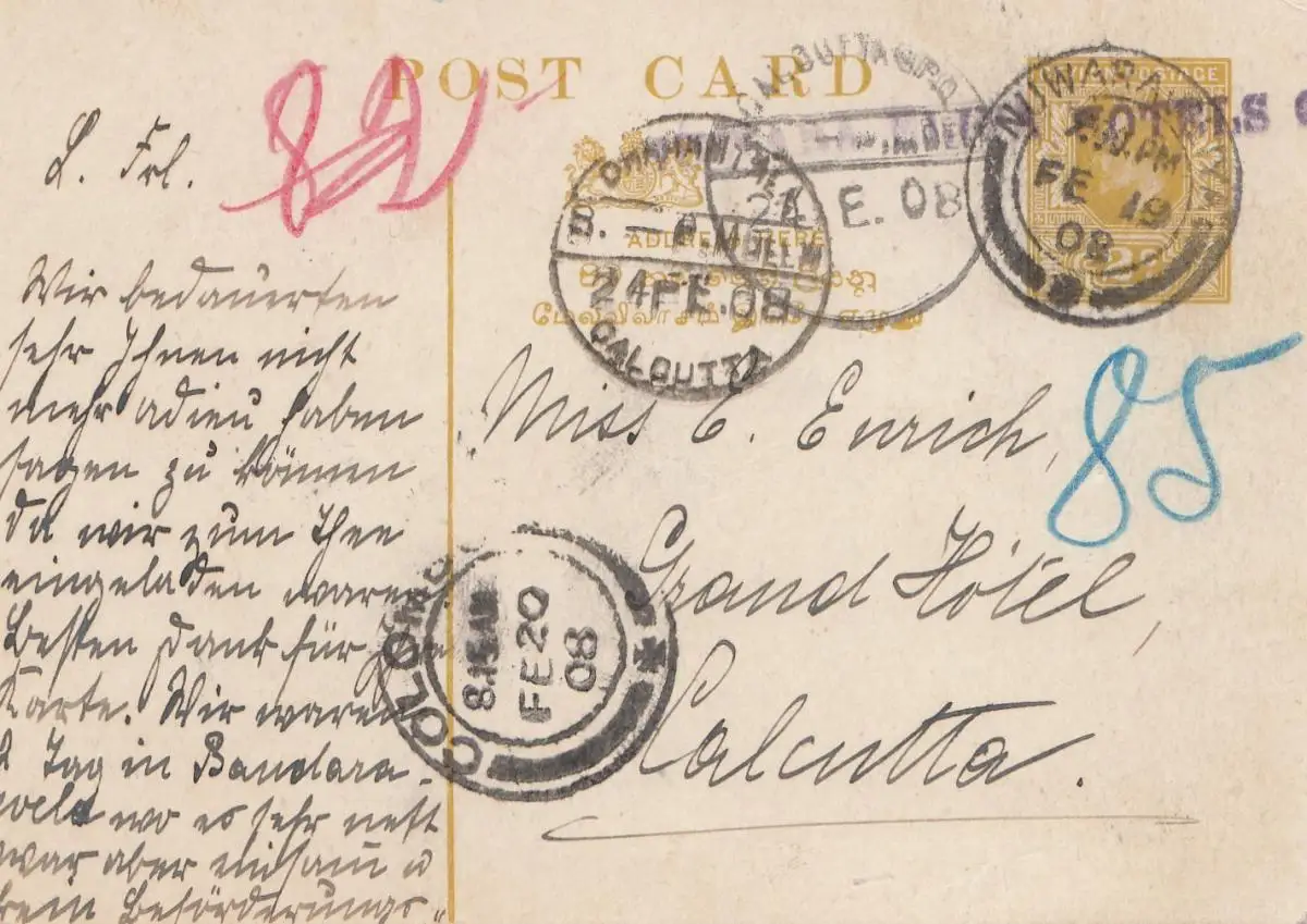 Ceylan: 1908: post card Nuwara Eliya to Calcutta/India