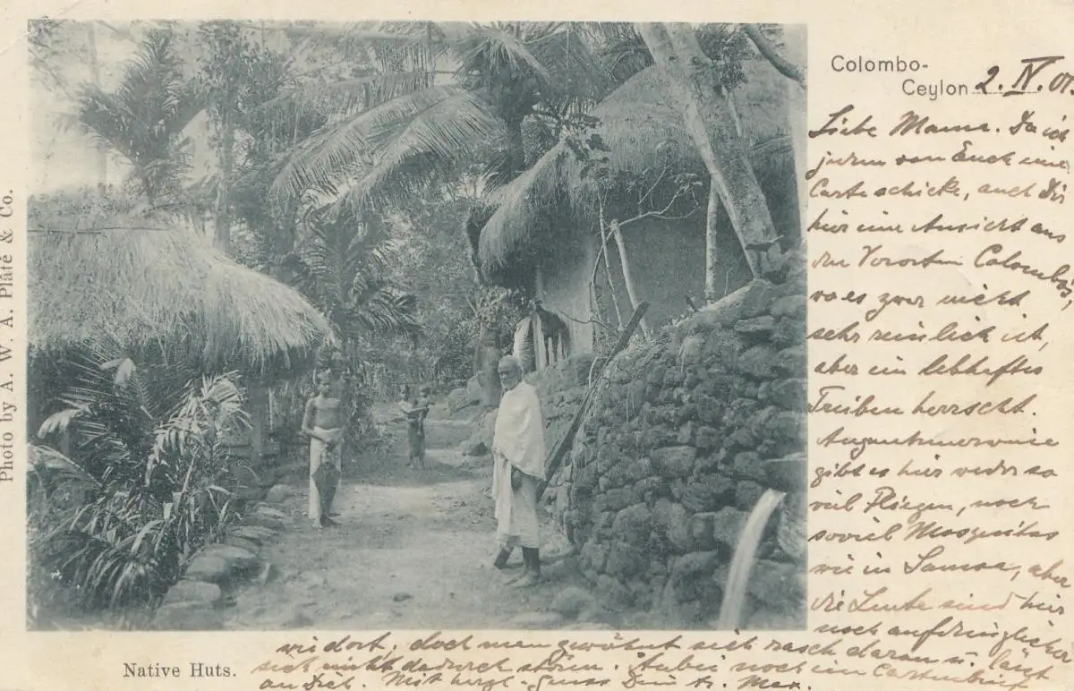 Ceylan: 1901 picture post card Huts Native Maskeliya to Crefeld/Germany