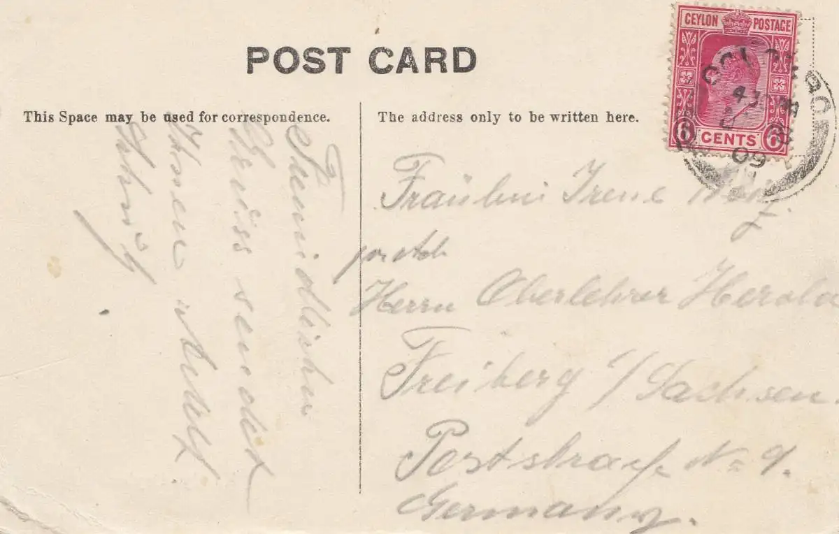 Ceylan: 1909: picture post card Kandy to Freiberg