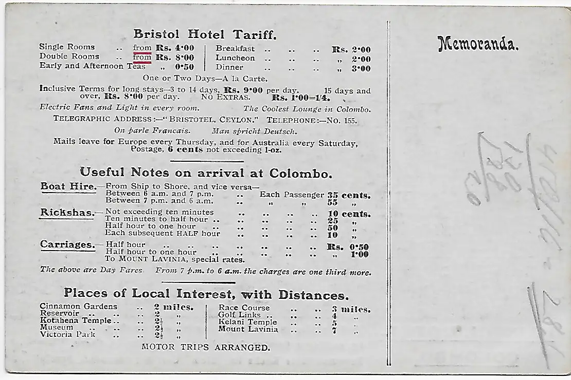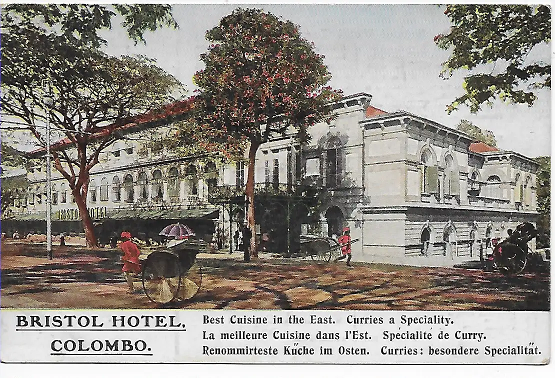 Ceylan: picture post card Bristol Hotel Colombo, best cuisine in the east