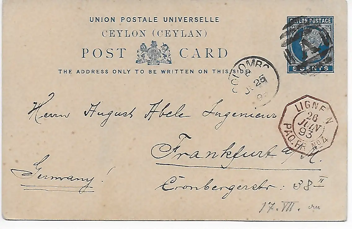 sehr schöner und seltener Bahnpostbeleg aus Britisch Indien F4 OUT / SET N°1 mit Mischfrankatur King Edward / King George 1912 nach nach Frankfurt am Main versandt. Ich bin sehr zufrieden, vielen Dank!