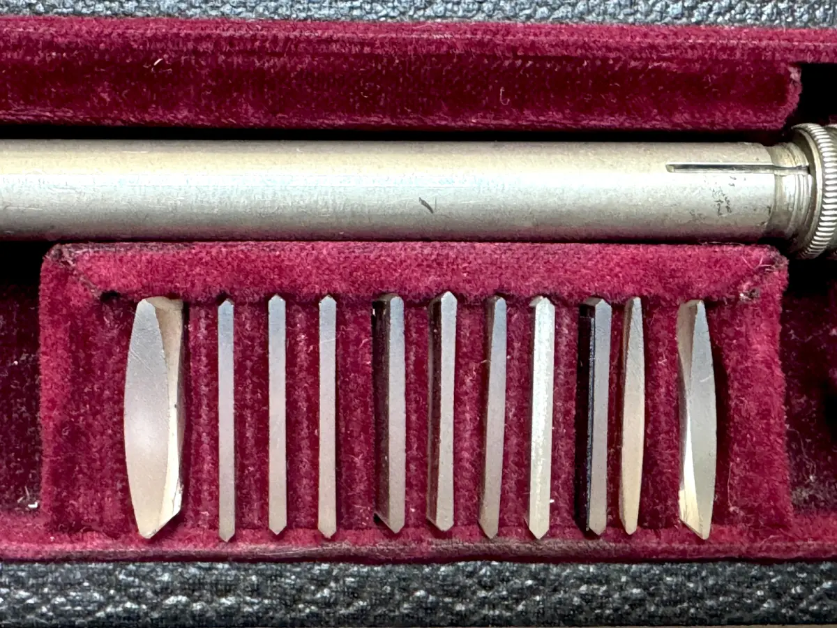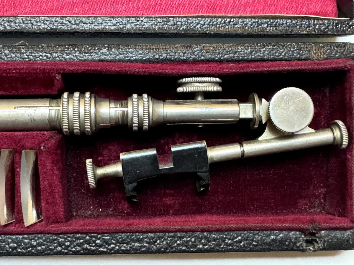En cuivre nickelé et onze lentilles à foyers différents, la chambre est vendue dans son écrin doublé velours avec le sigle de P.Berville.