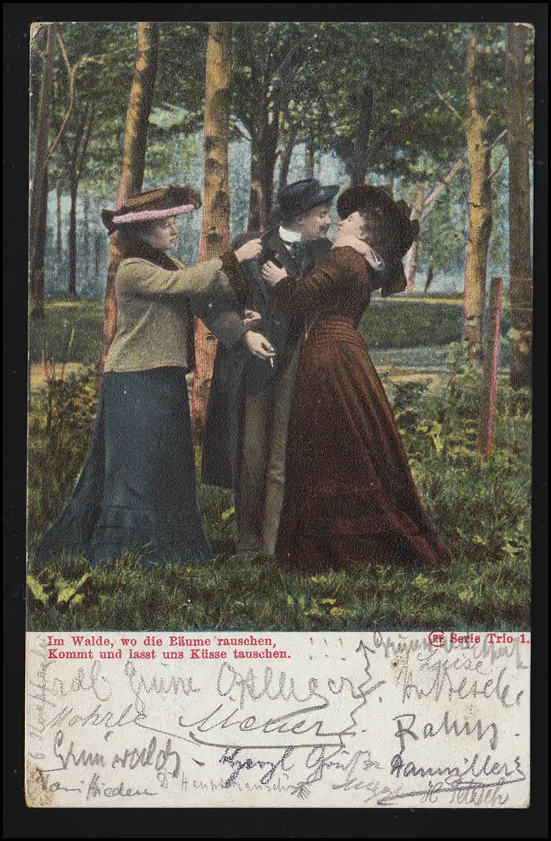 Cher AK homme entre 2 femmes, baiser, ajout O Oythalhaus OBERSTDORF 3.6.1914