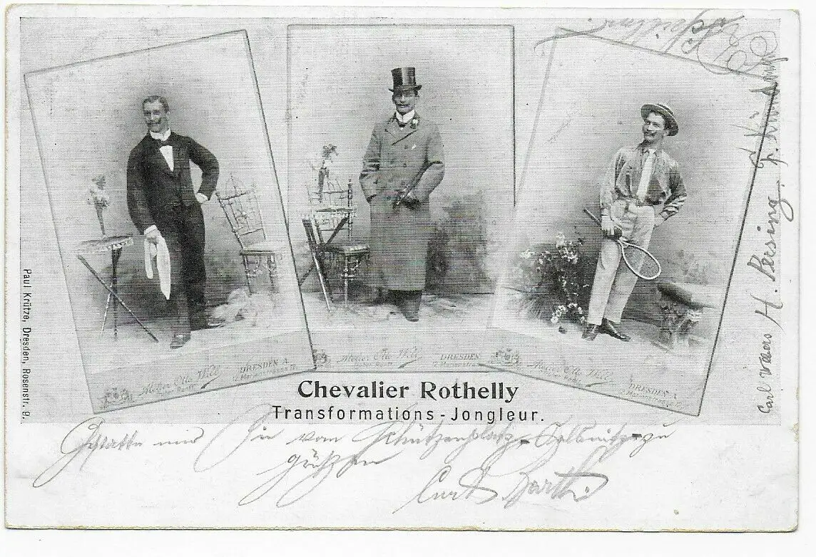 Chevalier Rothelly, Jongleur, carte postale de Oelgnitz 1901 à Falkenstein