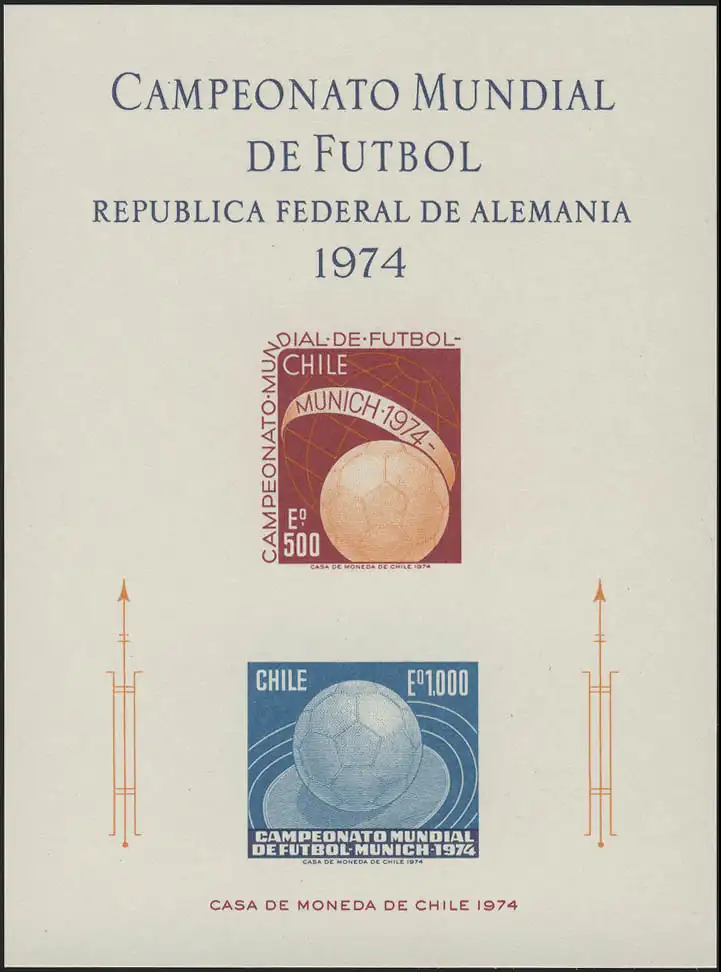 Chili Carte commémorative 804-805 Coupe du Monde Munich 1974, sans caoutchouc