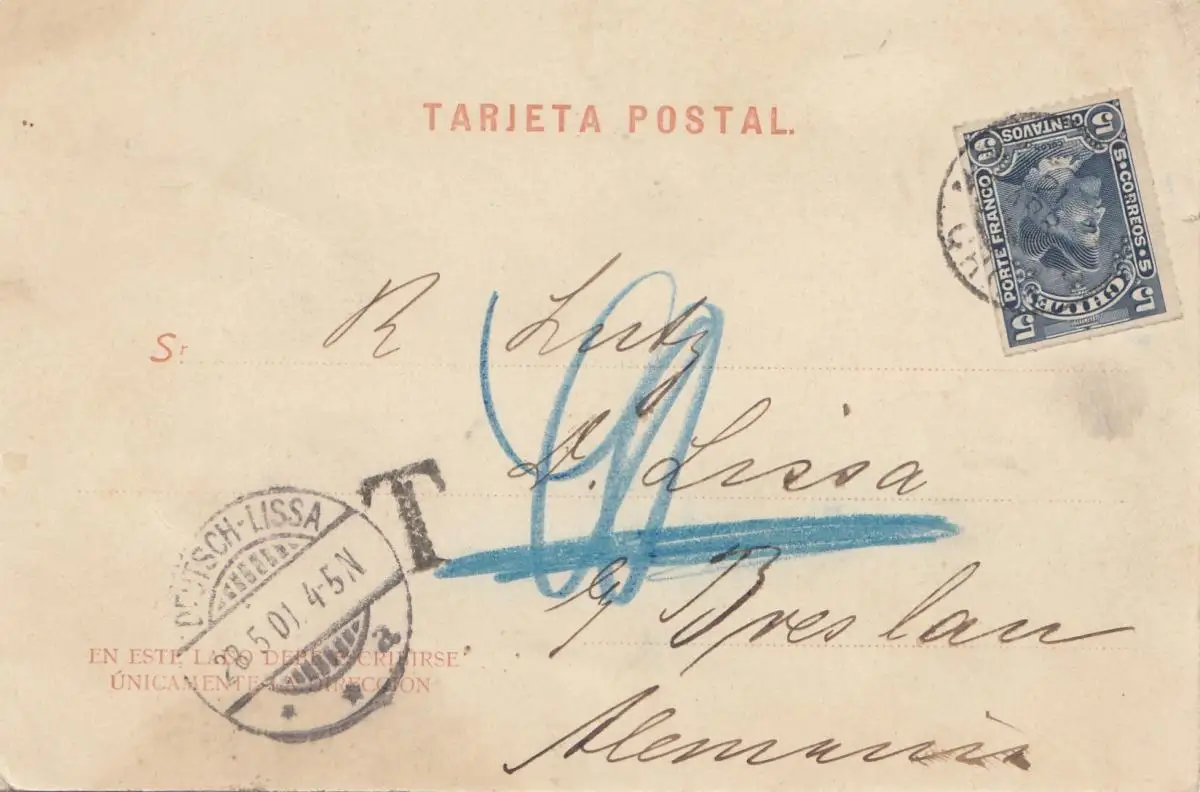 Chili: 1901: picture post card Français-Liss avec Taxe to Wroclaw