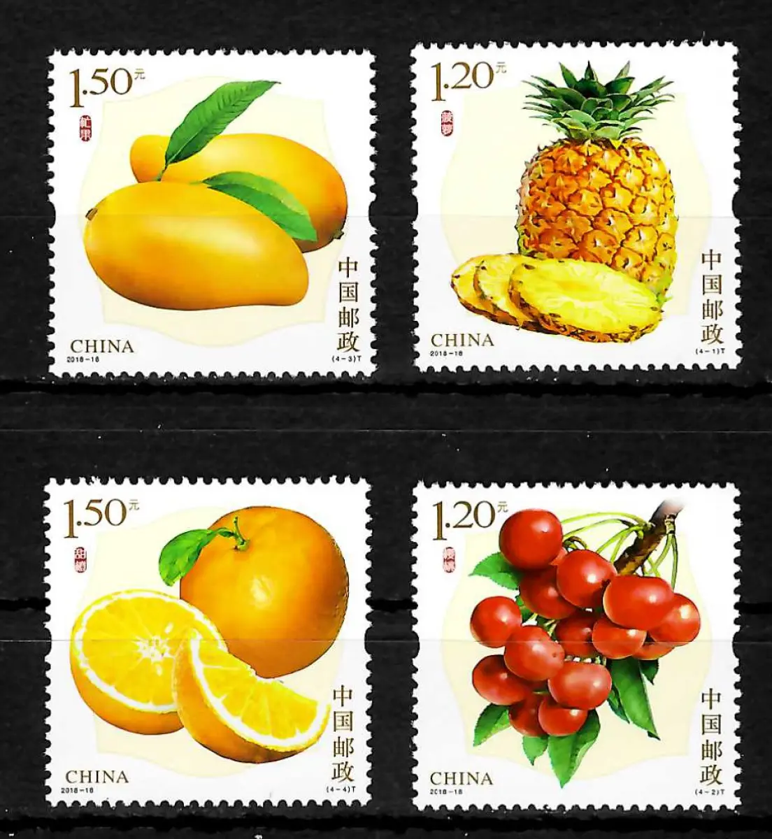 China 2018-18: Früchte, Kirschen, Ananas, Orangen, Mango, postfrisch