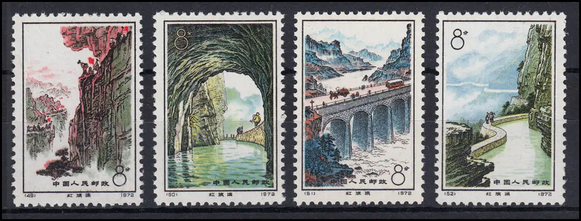 Chine 1122-1125 Canal d'irrigation Faucon rouge 1972, 4 valeurs, ensemble ** / MNH