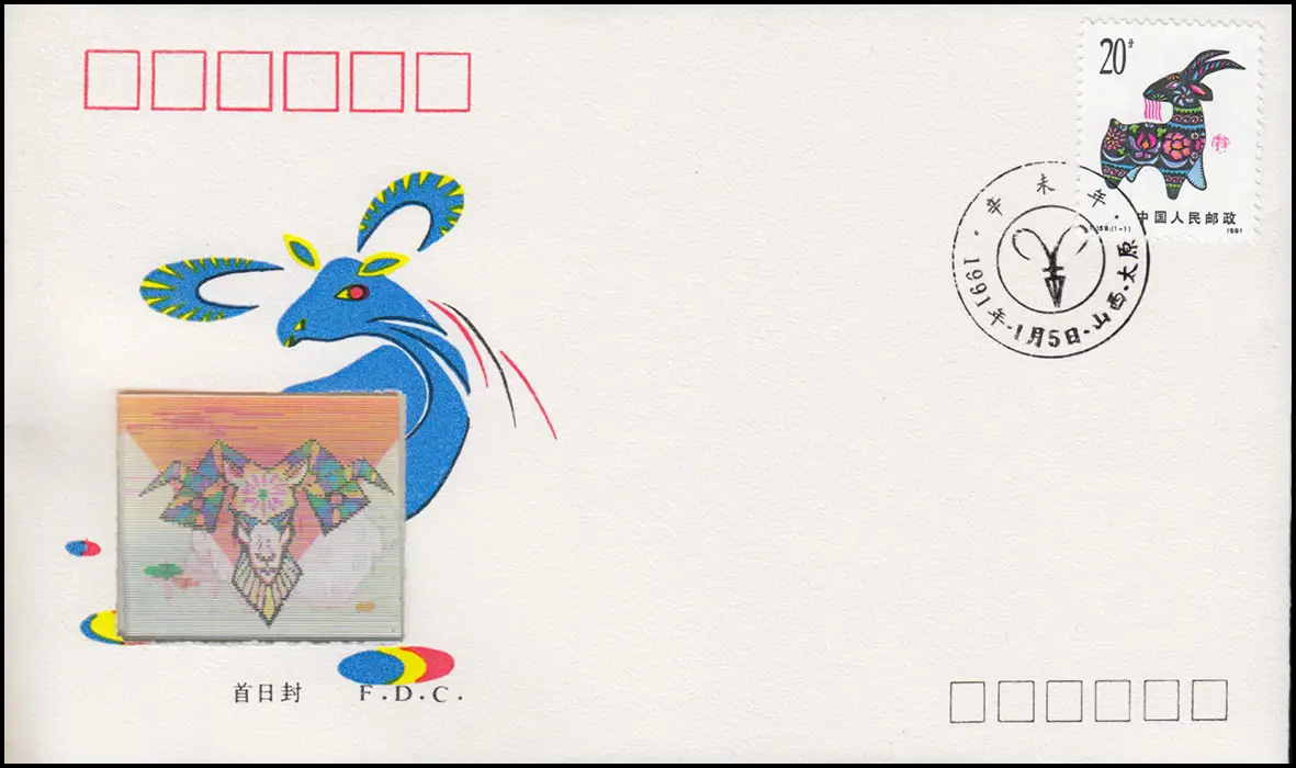 Chine: Bijoux FDC Année de la brebis MICHEL 2347A du 5.1.1991 avec bosses