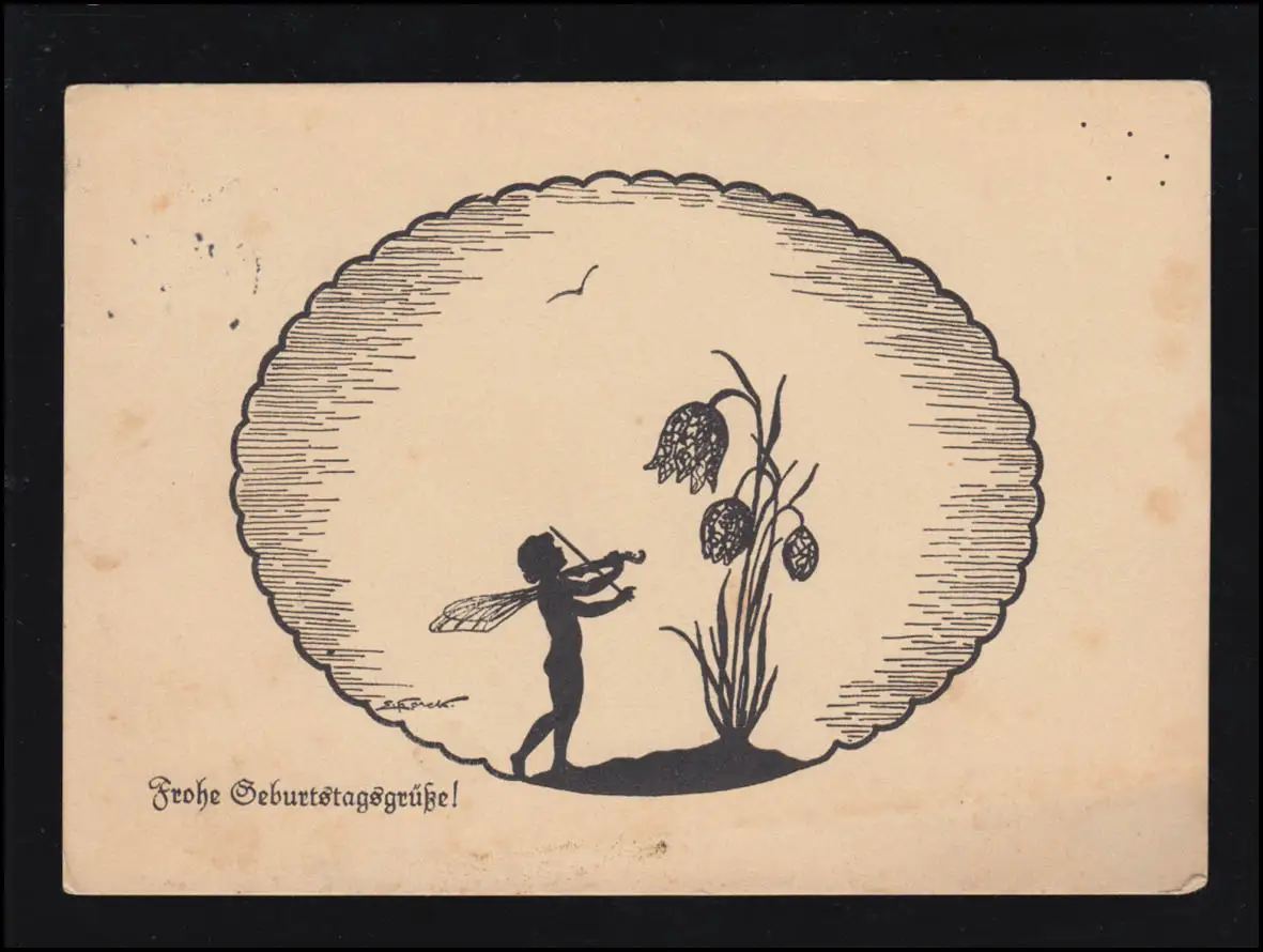 Ciseaux-AK Artiste paralysée: Engel, violon et fleur, HAMBURG 1937