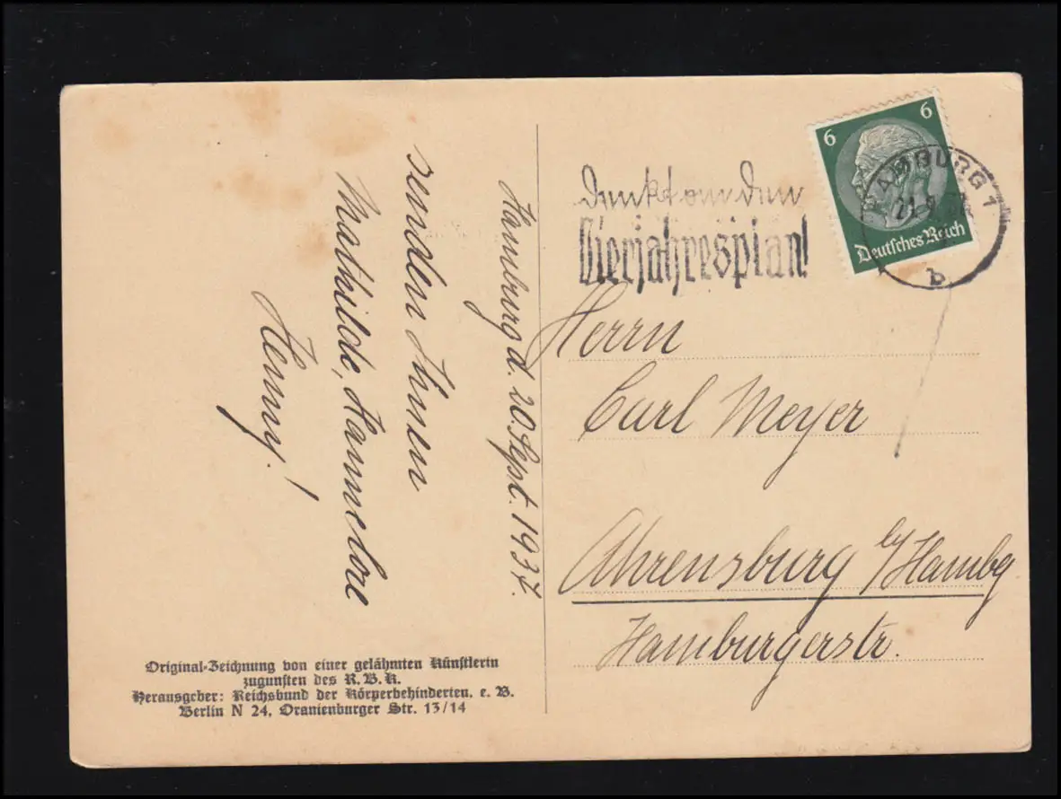 Carte d'ombre Schwarzbild Déchirure d ' ombre, éditeur: Reichsbund des Handicapés e.V. Berlin, légèrement tacheté Test: original Référence produit: 00000000043806
