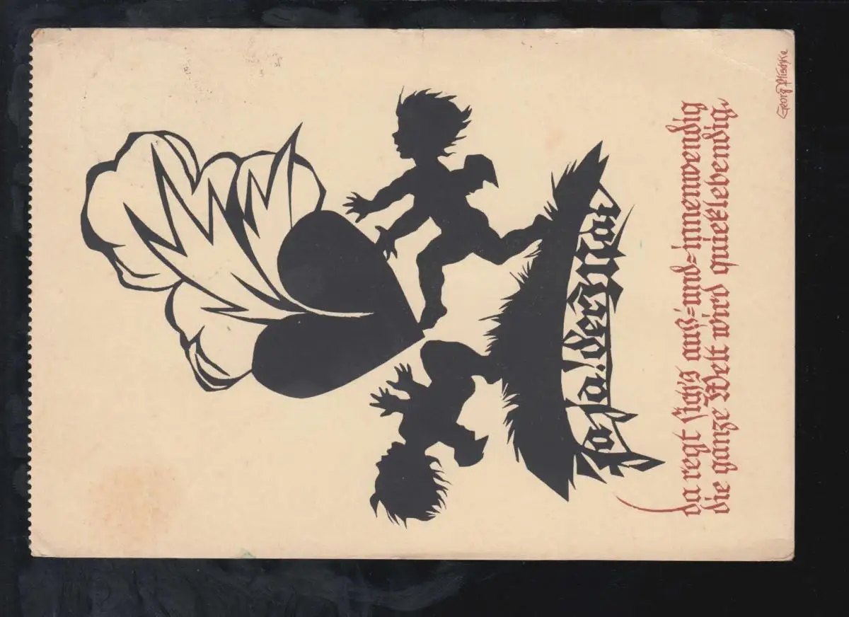 Ciseaux-AK Georg Plischke: Deux anges et Cœurs, HORNBACH 14.5.1930