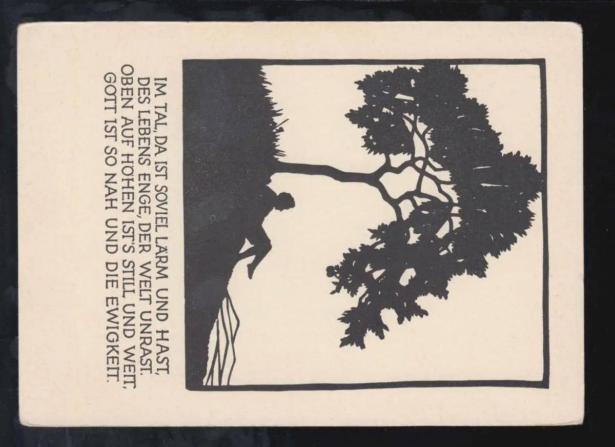 Carte d'ombre noir-image Déchirure de l'Ombre, coupes de ciseaux et versets de A. et de Fr. Hartmann-Zeller: Dans la vallée, il y a tellement de bruit et d 'urgence, de vie étroite, du monde des embarras. Au sommet, c'est calme et loin, Dieu est si proche et l weiterheit. Test: original Référence de la marchandise: 00000000028563>p>Remarque: Cet article n'existe qu'une fois. Vous recevrez exactement l\'article représenté.