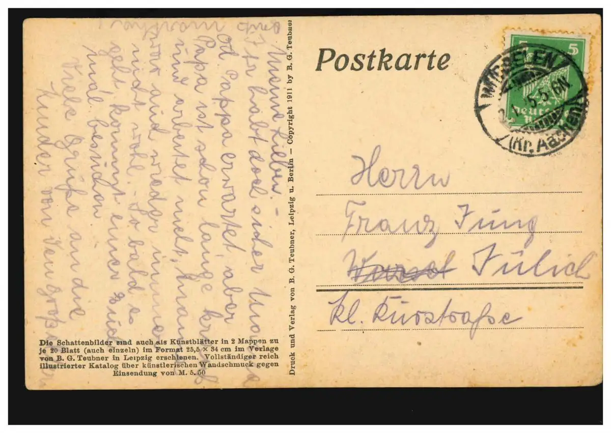 Carte d'ombre Schwarzimage Déchirure d ' ombre, Le sommeil sur le peignoir de pavot avec le hibou, édition B.G. Teubner, Leipzig Examen: original Référence produit: 00000000033193