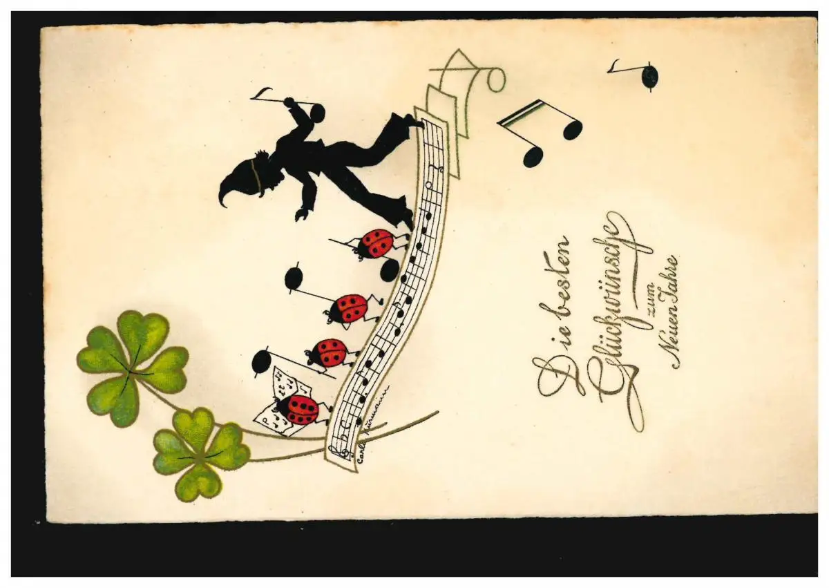 Ciseaux-AK Nouvel An Glücksklee Maikkäfer Notencilde Nwerg, JENA 30.12.1940