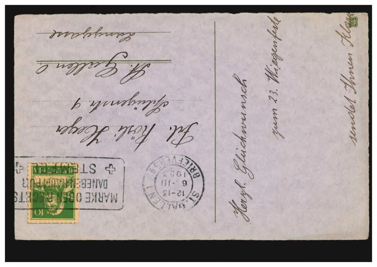 Ciseaux AK anniversaire - Fille avec pot de fleurs, ST. GALLEN 6.3.1923