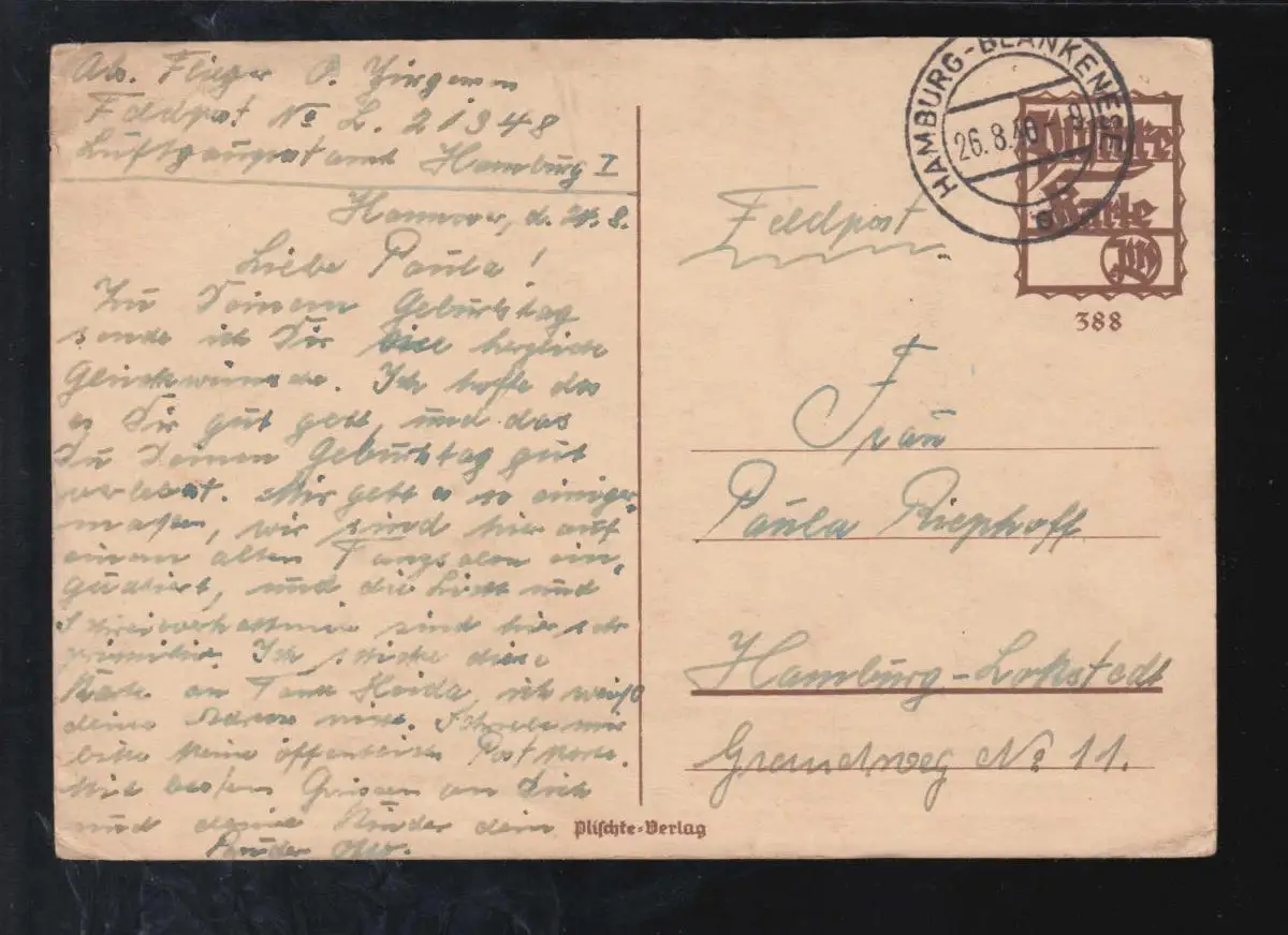 Ciseaux de chance haltes ferme ... Porc Post Blankenese 26.8.1940