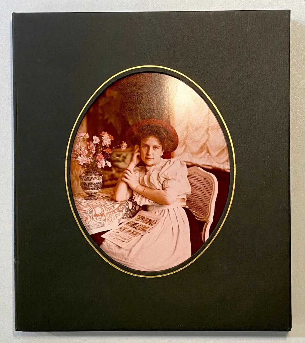 Coffret avec un tirage en couleurs apparaissant dans un médaillon, renfermant une plaquette de présentation de 48 pages et tirages à partir de plaques autochromes contrecollés sur papier.