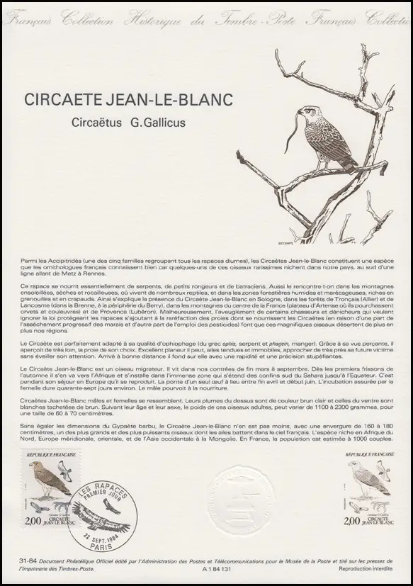 Collection Historique: Aigle serpent / Circaetus gallicus 22.9.1984