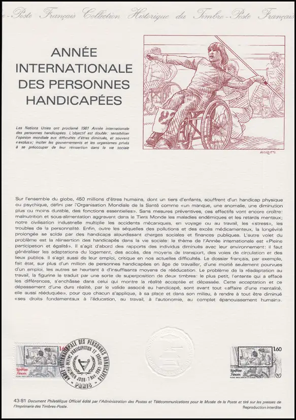 Collection Historique: Année Internationale des Handicapés 7.11.1981