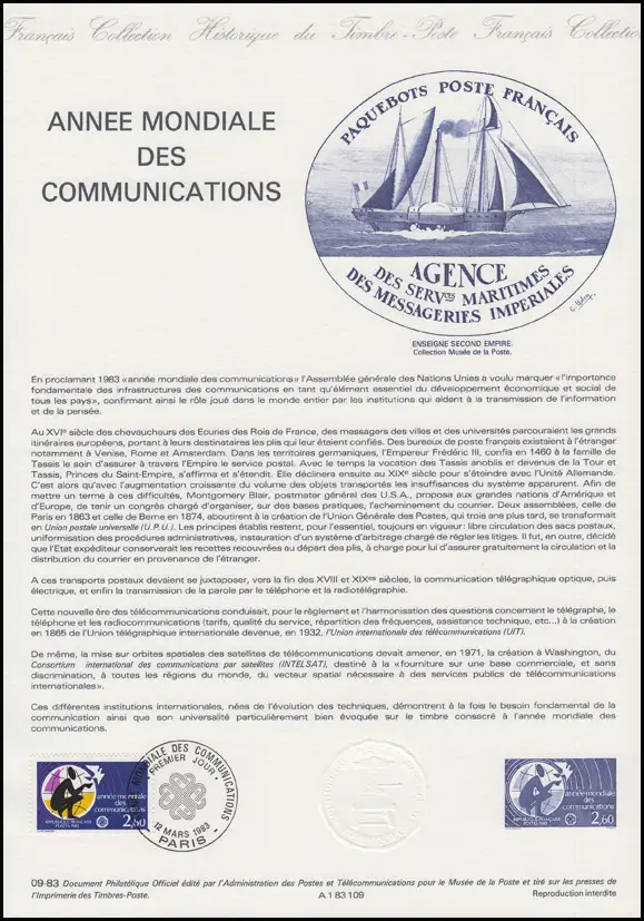 Collection Historique: Année de la Communication Mondiale 12.3.1983